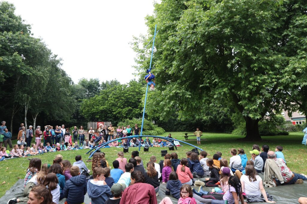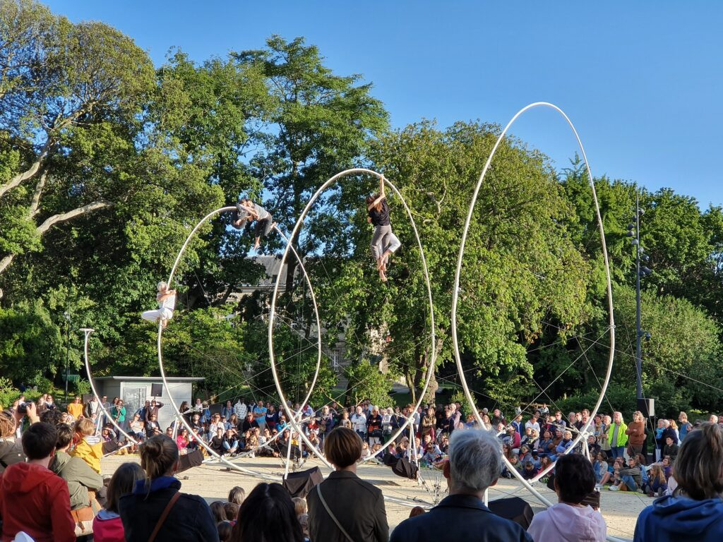 La Cie Rhizome en suspension dans le ciel de Saint-Brieuc lors de cette fin de saison