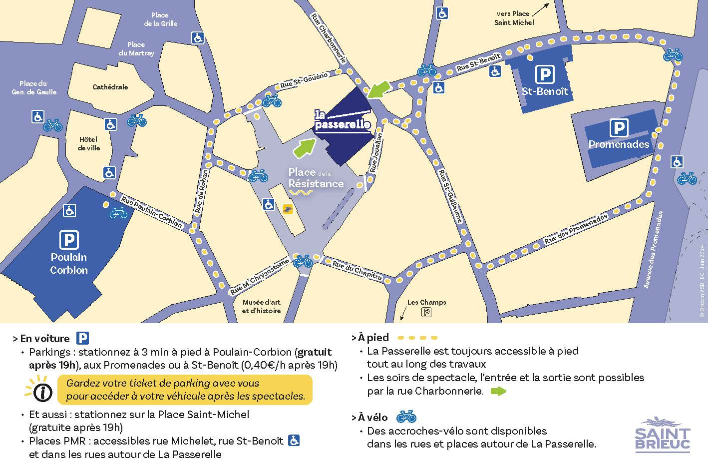 Privilégiez l’accès à La Passerelle les soirs de spectacle par l’entrée située rue Charbonnerie.