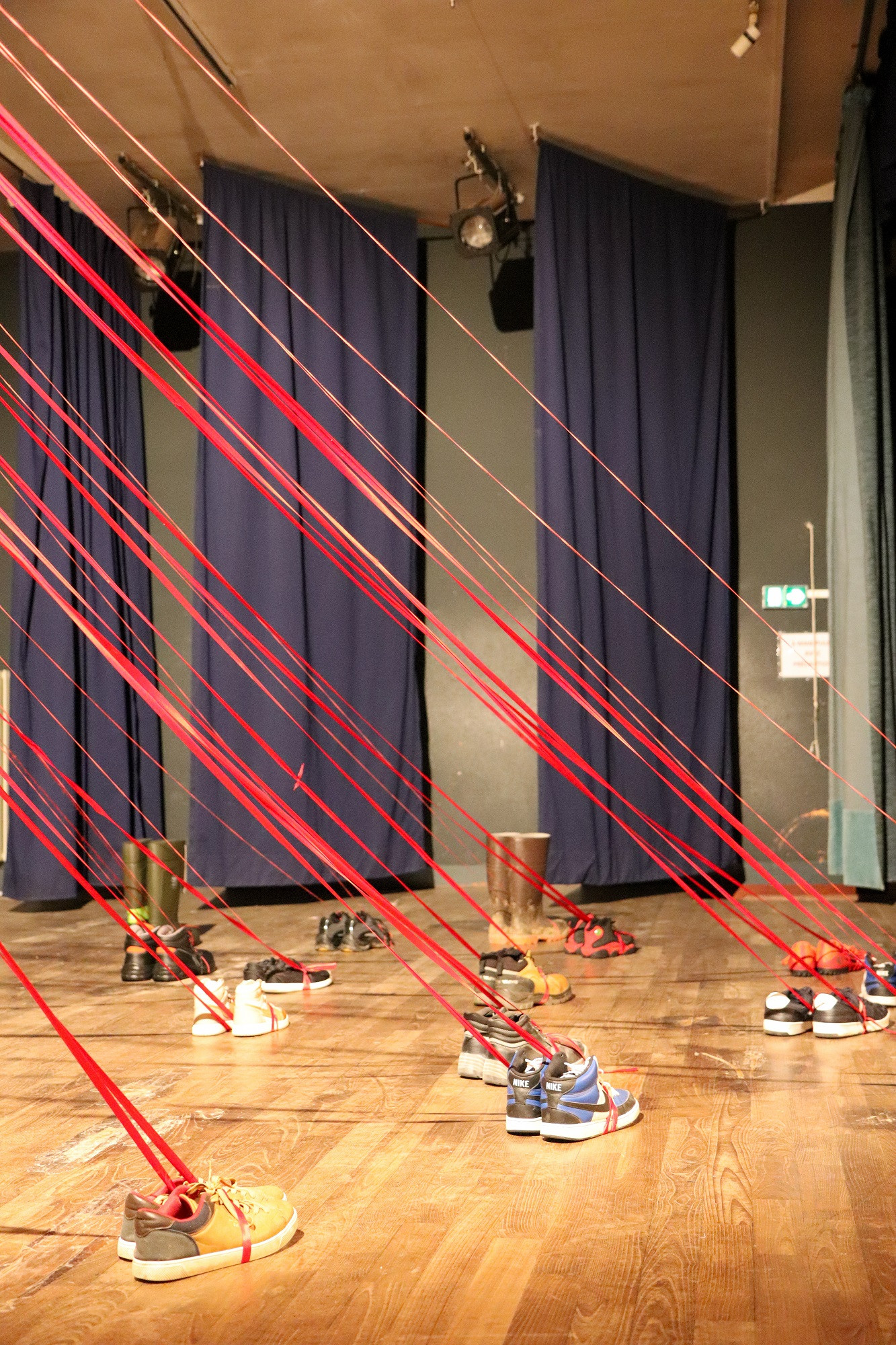 Photographie 3 & 9 : Le décor de l’une des scènes réalisées à partir des chaussures portées par les adolescent·es au travail.