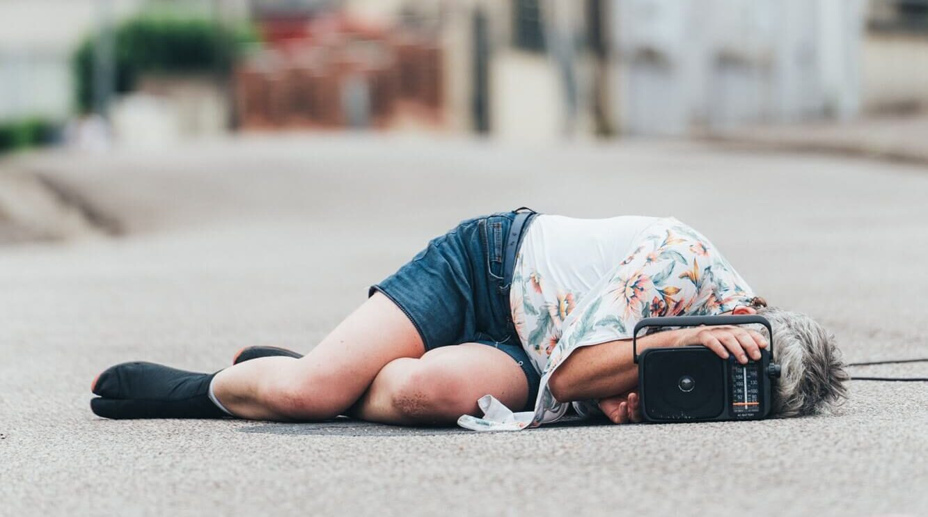 Approcher à pas de loup l’animal « travail » qui régit nos vies et nos relations sociales. Et si on le prenait au mot ? Et si on en décalait les enjeux, les injonctions ? Cinq êtres de chair fatigués, broyés, lâchent tout pour mieux réinventer un autre rapport au monde. À partir du texte d’Antoine Mouton, Laure Terrier tricote dans l’espace public, son terrain de jeu préféré, une odyssée intime et collective tissée de danse, chants, textes poèmes et radios. Une pièce qui tend l’oreille et répond aux normalisations à l’œuvre par le toucher, le son, l’humain… et l’humour aussi.