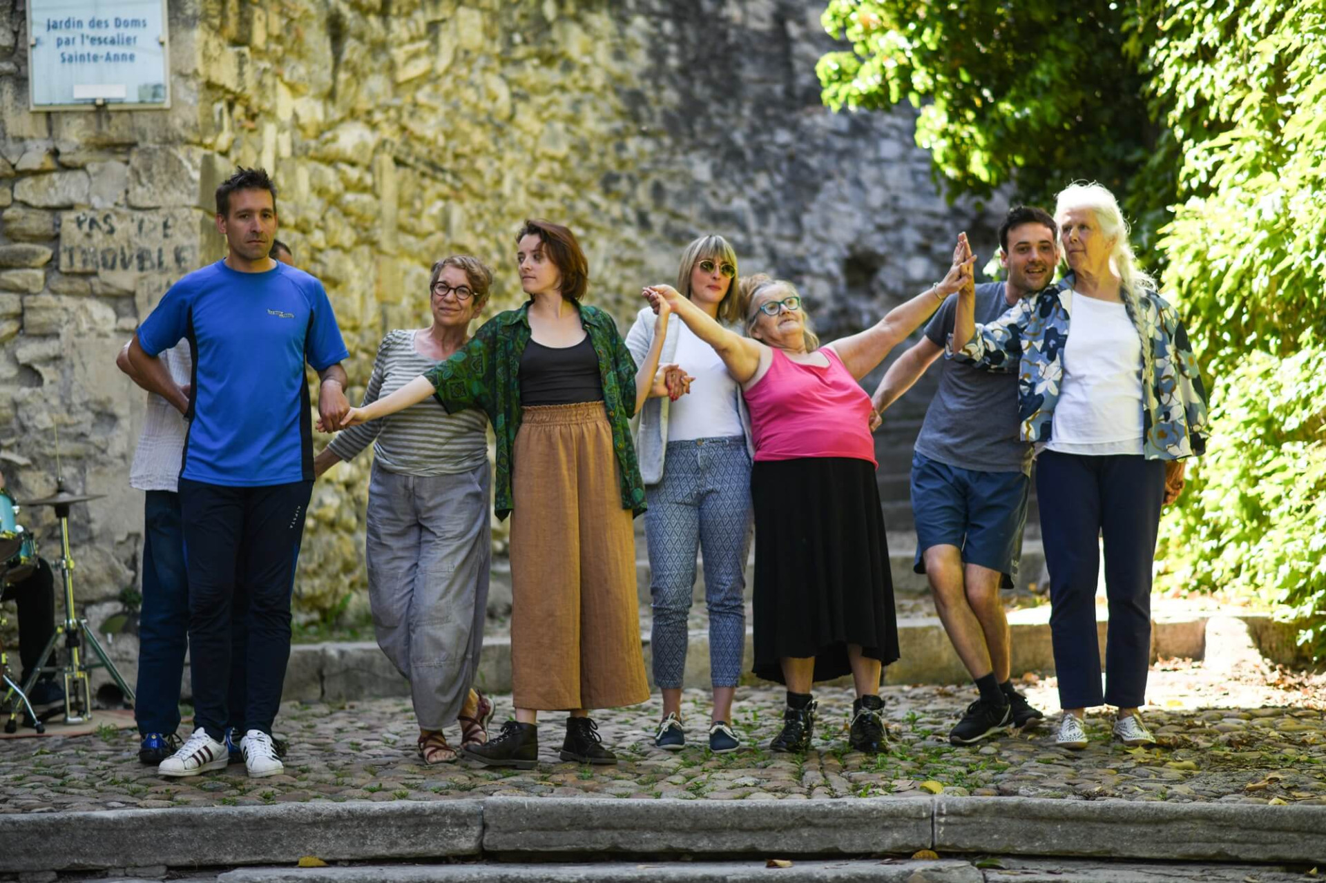 Des paroles intimes et des corps impriment sur la pierre blanche d’Avignon une passionnante fresque humaine, celle d’un groupe de danseur·se·s amateur·rice·s aux parcours de vie fragilisés, réuni·e·s par un projet chorégraphique au long cours avec Massimo Fusco. Le réalisateur Thibaut Ras les filme au plus près, dans des endroits de la ville choisis avec soin, porteurs d’histoires du passé. Voix, gestes et grains de peau résonnent de sensibilités multiples, nous disent la puissance guérisseuse de la pratique collective. Et mettent en lumière le travail de Massimo Fusco, seul capable d’amener à une telle qualité de contact et d’écoute.