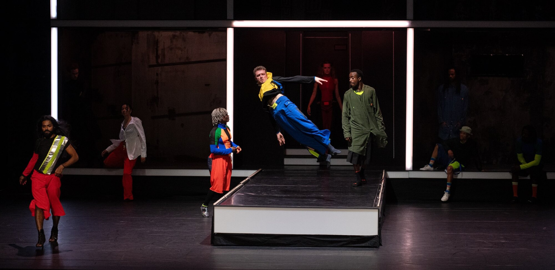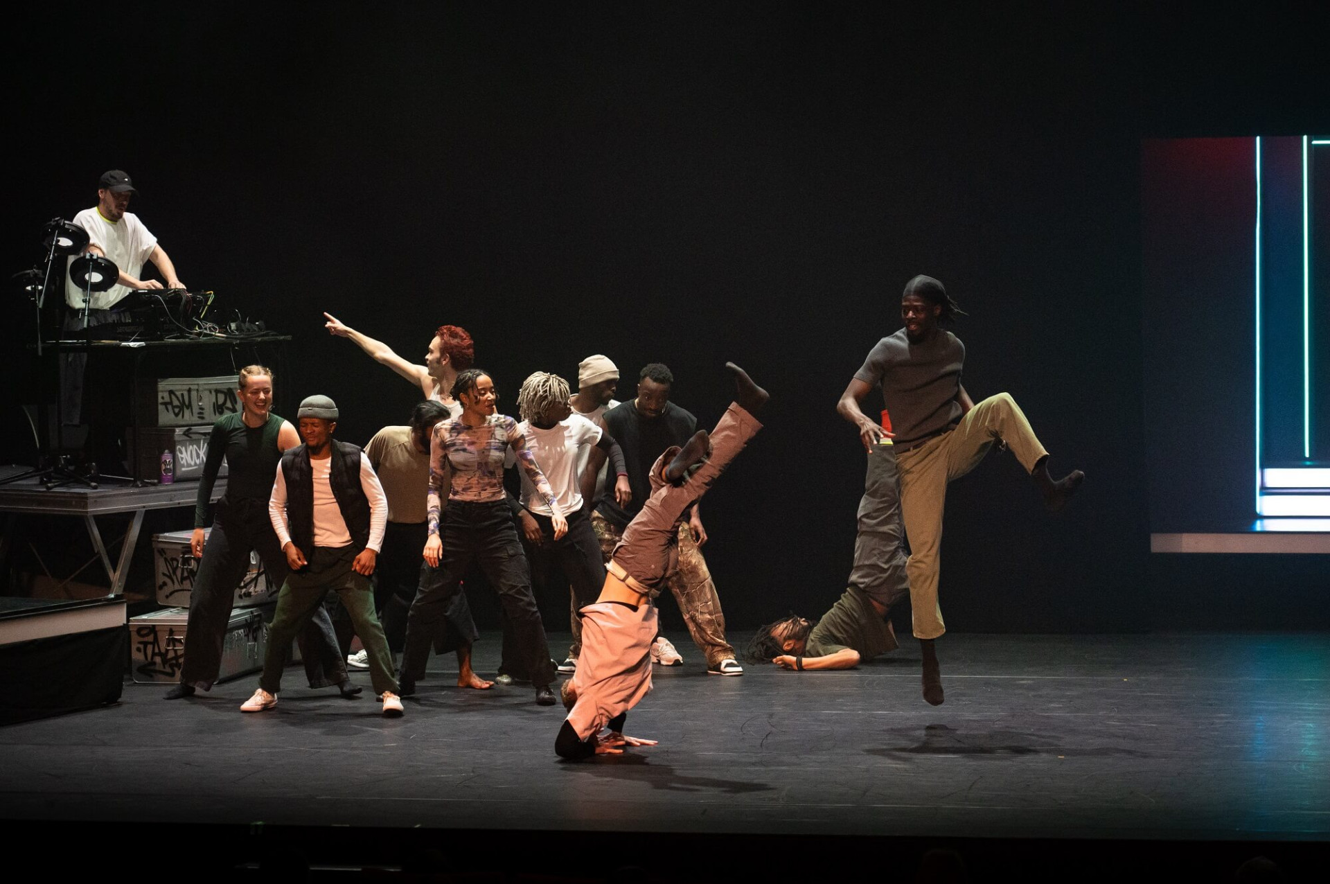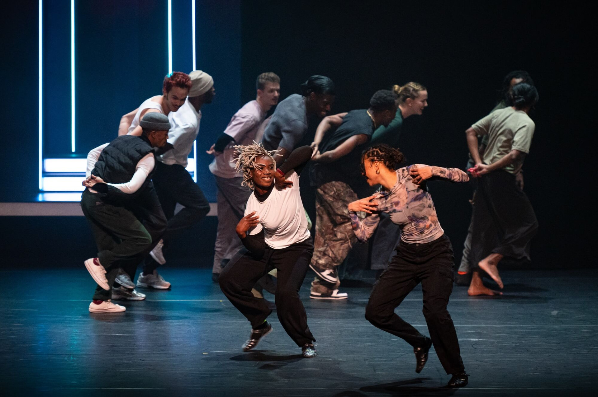 Pour cette fête électrisante à l’effervescence contagieuse, le chorégraphe Amala Dianor réunit un époustouflant casting de onze danseur·se·s. Dans un décor qui évoque les clubs underground de chacune des mégalopoles dont ils sont originaires, DUB est une rencontre au sommet de la jeune communauté hip-hop planétaire. Rassemblé par la même pulsation, embrasé par la musique mixée en live par Awir Leon, le groupe partage et réinvente des danses traversées d’influences multiples : dancehall, pantsula, voguing, waacking, streetdance, …. En trois tableaux, toujours en mouvement, ils sont la preuve vivante et survoltée de la manière dont danse hip-hop évolue : par variation et appropriation, à la manière du dub, cette extension électro du reggae dont la pièce tire son titre. Irrésistiblement jouissif !