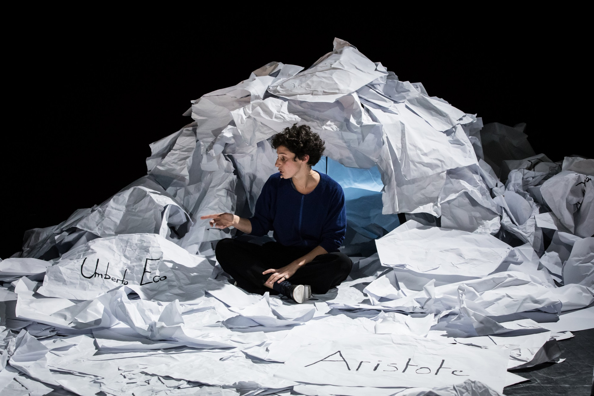 Une bonne histoire, c’est un peu comme un bon vin : sans la subtilité d’un assemblage de cépages, pas de saveur ni d’émotion. A la manière d’un magicien qui dévoilerait ses tours, Alice Zeniter conçoit une drôle de conférence théâtralisée pour raconter la mécanique du récit. Elle remonte aux sources, évoque les chasseurs-cueilleurs de la préhistoire, traverse l’Antiquité grecque dans une imitation très réussie d’Aristote, fait un bond dans le temps et mentionne, en femme engagée, l’inégalité des sexes en littérature. Un igloo de papier en guise de décor, elle convoque Sherlock Holmes, Anna Karénine, les personnages des Misérables. Avec quelques anecdotes personnelles, un brin de mélancolie et beaucoup d’humour, la romancière éclaire avec talent à la fois l’histoire des Lettres et leur mode de fabrication.