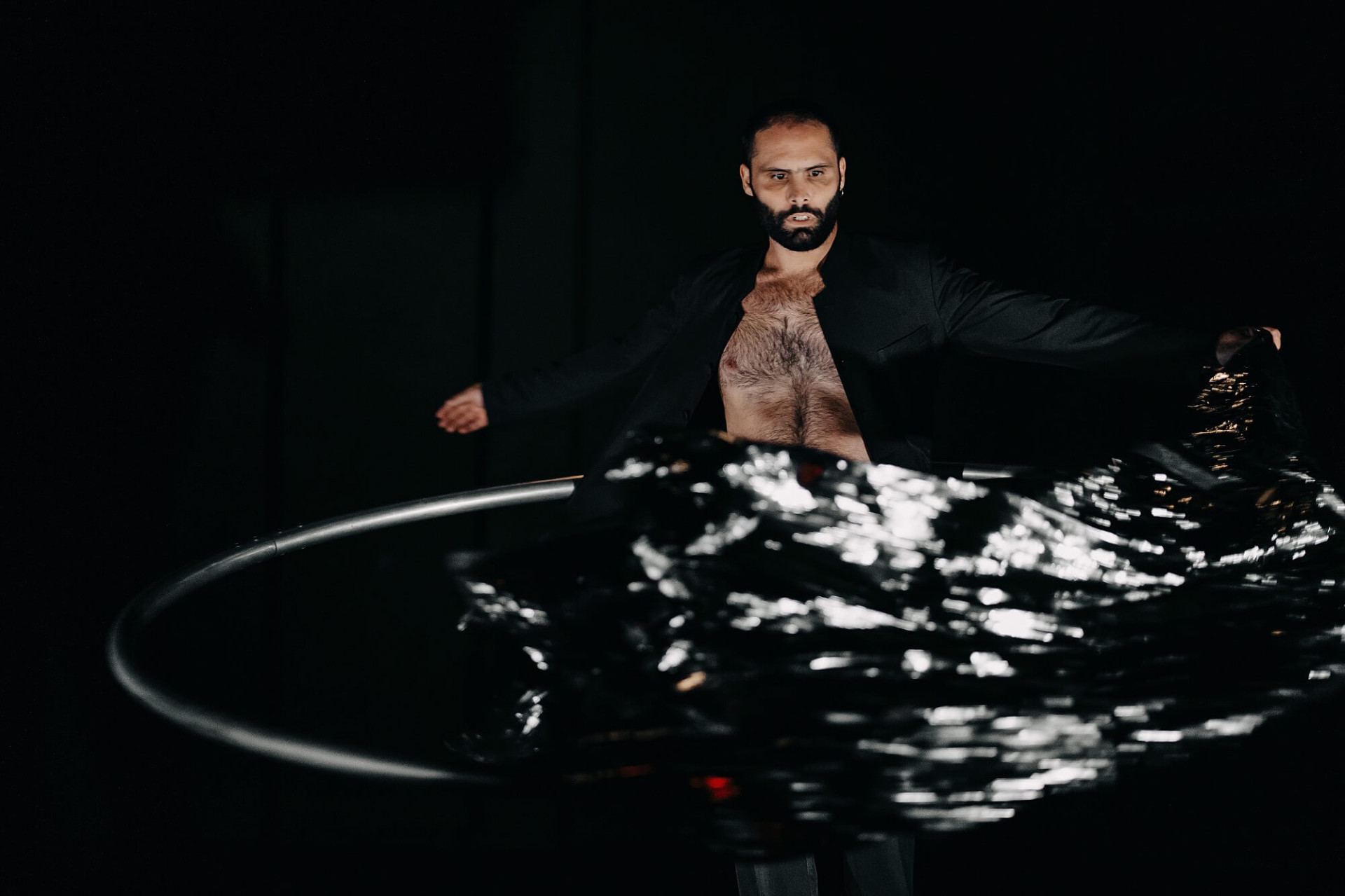 La roue Cyr, ce cercle de métal de 15 kg, doit beaucoup de sa redécouverte sur les scènes à Juan Ignacio Tula, artiste circassien argentin expert en la matière. Instante, créé en 2019, est son solo signature ; celui où il fait corps avec la roue tournoyante, dans un mouvement aussi étourdissant qu’hypnotique. Lontano, qu’il a écrit pour Marica Marinoni, fait figure de contrepoint à Instante, dans une confrontation conflictuelle avec la roue dévoreuse qui relève d’une transe épique. Deux facettes d’un même acte de rituel. Le cirque en roue libre.