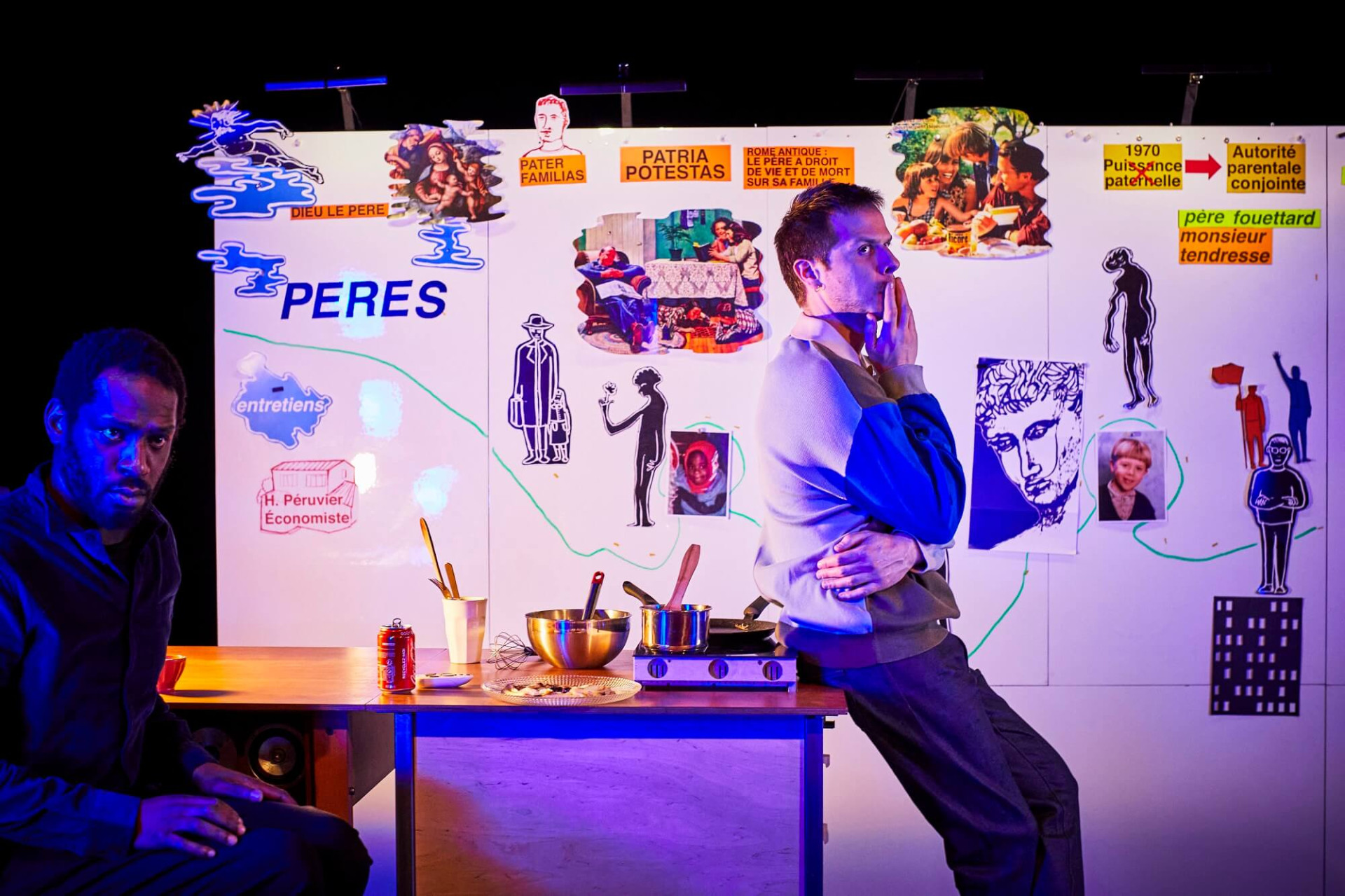 Comment est-on père aujourd’hui ? Élise Chatauret et Thomas Pondevie ont recueilli, une année durant, la parole de familles hétéroclites et le témoignage de professionnel·le·s. À partir de ces entretiens, le duo écrit une partition théâtrale aussi drôle que pertinente tissée de multiples voix, où deux acteurs formidables dessinent un tendre tableau des paternités, des plus archaïques aux plus modernes, sans jugement ni conseils tout faits. Tout en finesse, de nouveaux récits apparaissent, soulevant les questions d’égalité, d’émancipation et du poids du patriarcat. Quel est l’homme du futur qui se (dé)construit aujourd’hui ?