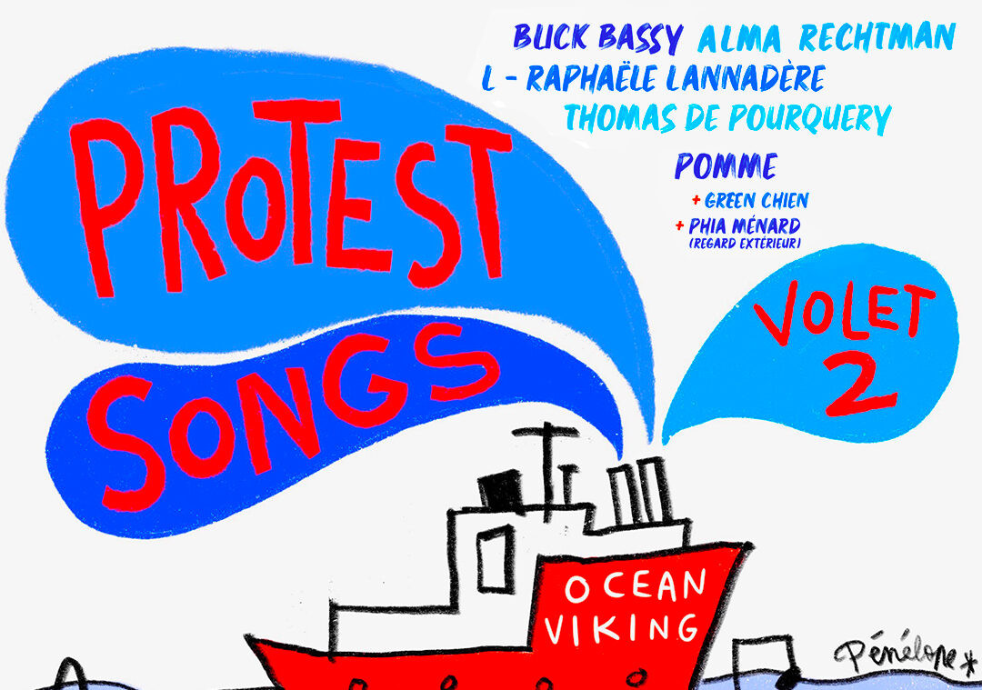 Pour Raphaële Lannadère, la chanson « sert à tout : se réjouir, pleurer, se fâcher, rêver, prendre le vent ou les armes. » Face au chaos du monde, elle crée en 2017 avec trois amies musiciennes un répertoire de chansons contestataires, a cappella, l’occasion d’un compagnonnage acec SOS Méditerranée. Protest Songs est né. Huit ans plus tard, elle redonne de la voix aux côtés de Pomme, Blick Bassy, Alma Rechtman, Thomas de Pourquery et GreenChien, ses fidèles complices. Un chœur de résistance et d’espoir pour une soirée haute en couleurs et en émotions.