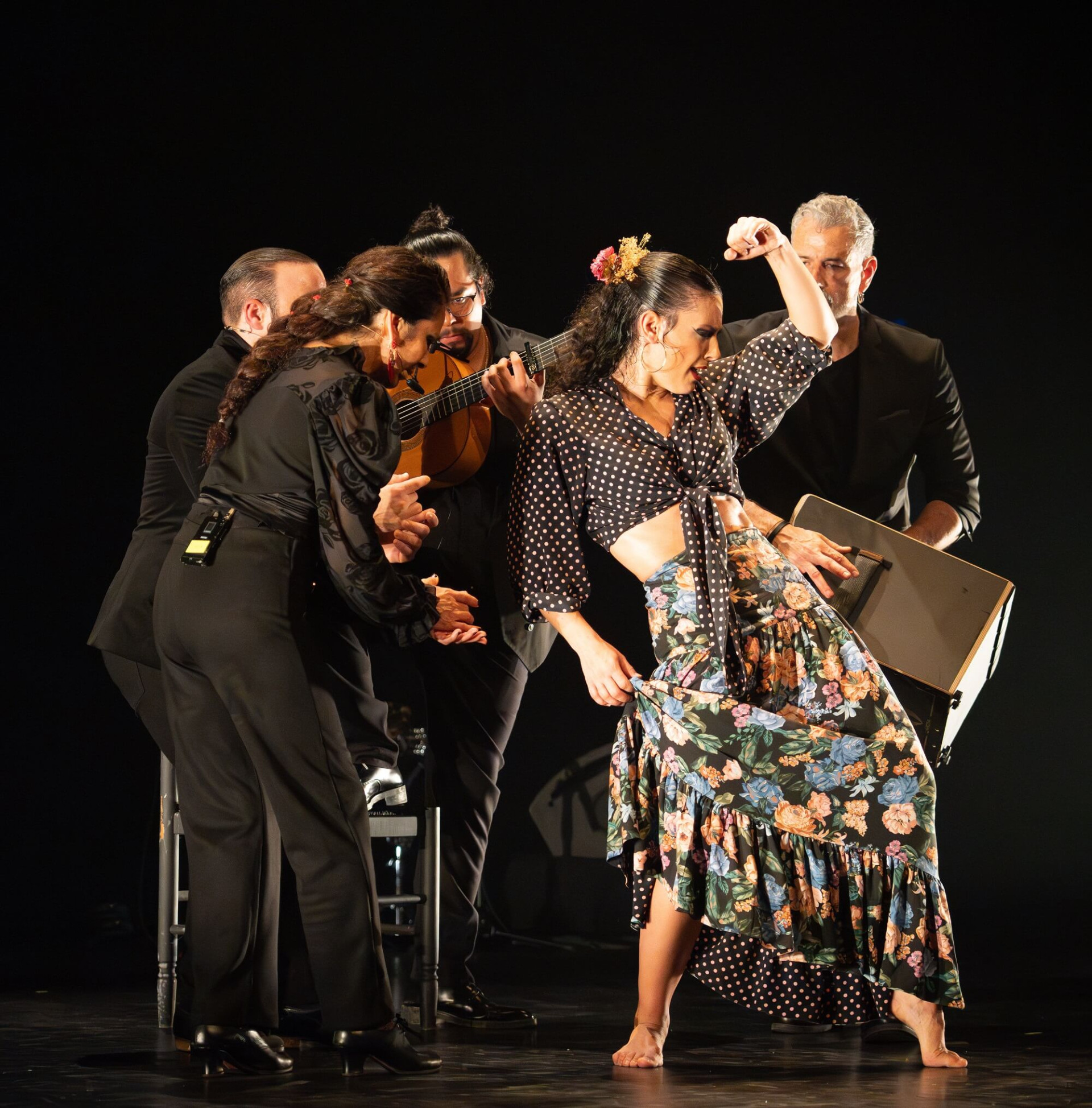 Embarquement immédiat pour l’Andalousie ! À l’heure bleue, quand la chaleur s’apaise, apparaissent dans le clair-obscur du soir une robe, une guitare et deux chaises. Lucía La Bronce défend l’essentiel du flamenco qu’elle accorde à son insouciante jeunesse. D’abord féroce et furieuse, puis ondulante et douce, presque vaporeuse, l’incandescente danseuse du ballet de Séville magnifie la percussion. Les poignets s’ourlent, le corps se cambre, les talons frappent au sol… Dans un dialogue subtil avec les quatre musiciens virtuoses (Inma « La Carbonera » et Manuel Pajares au chant, Daniel Mejía « El Carqui » à la guitare et Andrej Vujicic à la percussion) passant par toutes les palettes d’émotions, en robe à pois ou à paillettes, elle irradie. Imprévisible comtesse aux pieds nus, jupe retroussée sur les chevilles, l’espiègle bailaora entre avec Recóndito, sa première création, dans la cour des très grands.