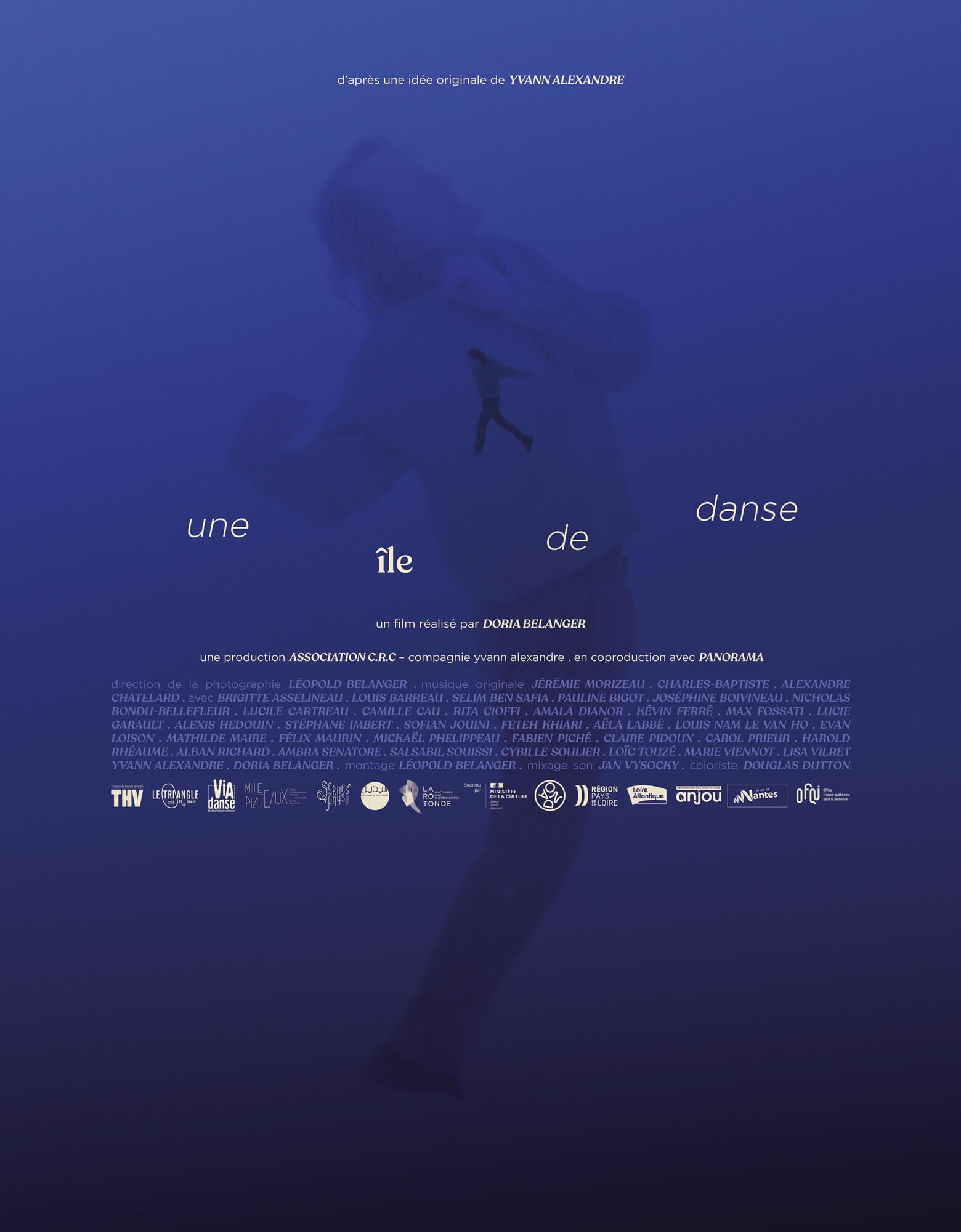 Yvann Alexandre prend le large, celui du plan, de l’image et du cinéma hautement sensoriel de Doria Belanger. Une île de danse est un film-archipel imaginé pour les trente ans de sa compagnie. Il y souffle un vent venu du dehors, au gré des lieux et des rencontres humaines et artistiques qui ont marqué son parcours. Dans les marais, au bord de l’océan, au milieu d’un ruisseau chantant ou sur les toits-terrasses de Tunis, les gestes des danseur·se·s vibrent.